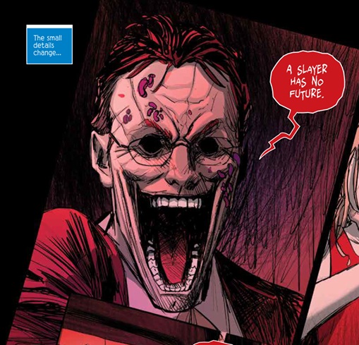 Drawings of Giles are less problematic in the other two comics so they seem to have gotten that under control. On the other hand, this image of Joker-faced Giles made me want to read the comic in the first place.